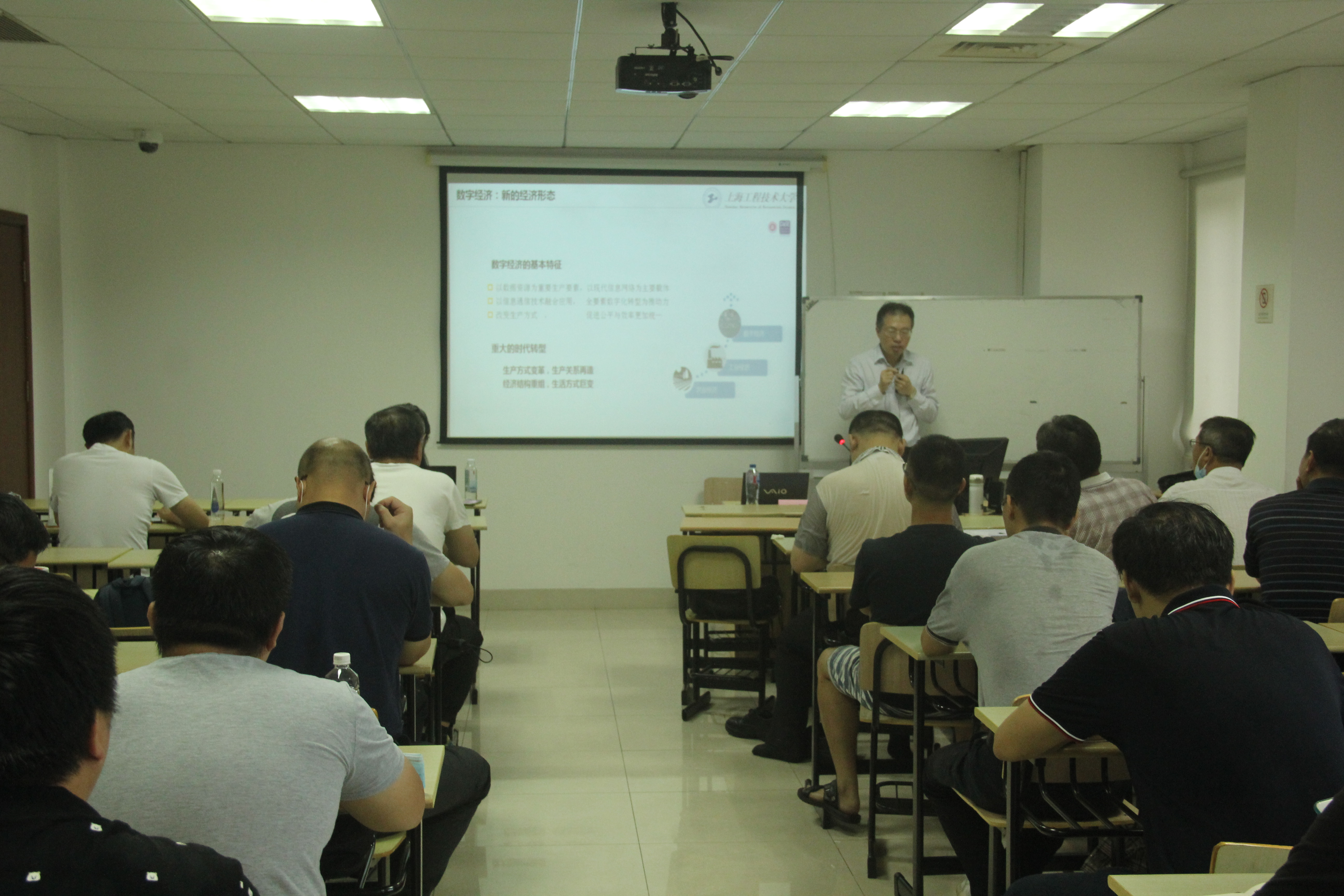 培训部从熟悉智能运维技术的发展及趋势和感知新技术在高端制造中的应用两方面定位设计培训课程。以“人工智能与5G前言知识”为主题,邀请王国中教授给学员们介绍了在数字化浪潮的驱动下,大数据、云计算、人工智能、5G等新一代信息通信技术与制造业的融合。课上王教授频频与学员开展互动问答,让学生系统而深度地学习和了解人工智能在行业中的运用,进一步建构完整的知识和技能体系。