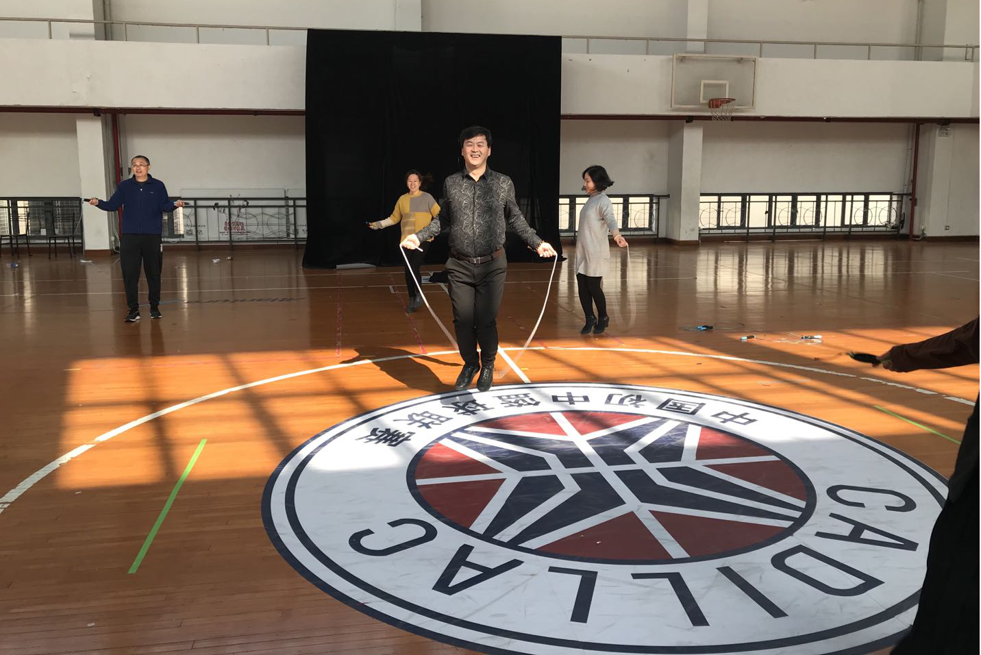 活动前,学院宋玉老师带领大家做赛前热身准备活动,院长亲自示范动作要领,随着“开始”的哨声,绳子就飞快地甩了起来,犹如条条彩龙在飞舞。绳子有节奏地在头上和脚下甩来甩去,脚尖轻轻地点着地面,只听到耳旁的绳子呼呼呼地响着,脚下的地板也发出哒哒哒的声音,一时间现场喊声、笑声、加油声此起彼伏,每个人脸上都洋溢着灿烂、快乐的笑容。