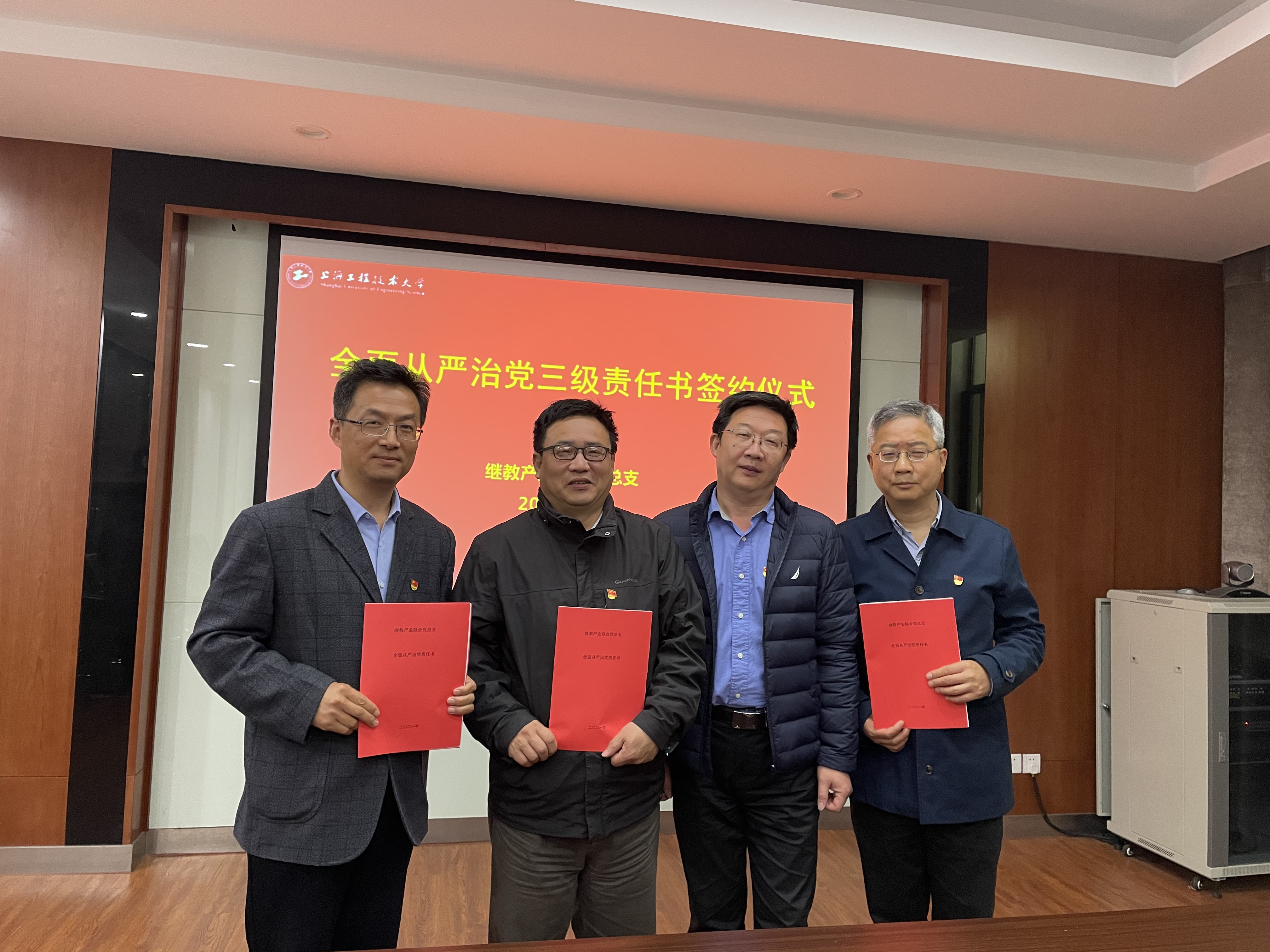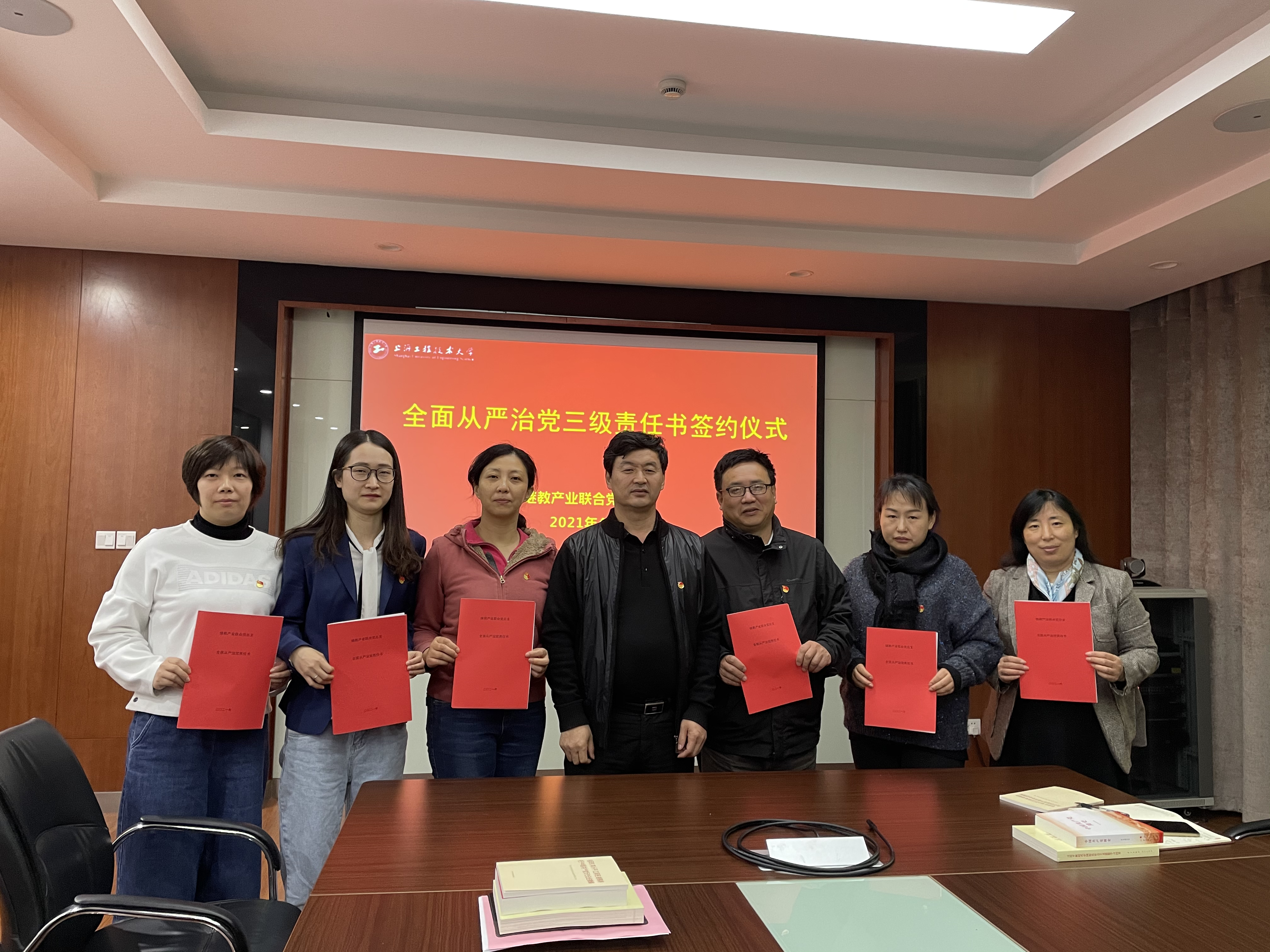 继教产业联合总支书记叶枫传达了2021年学校全面从严治党工作会议精神,回顾总结党总支2020年全面从严治党工作成效,安排部署2021年继教产业联合党总支全面从严治党工作。继教产业联合党总支书记叶枫与各党支部书记,继教产业联合党总支副书记、sjb世俱杯中国官网入口院长谢敏与sjb世俱杯中国官网入口分管副院长、各部(室)主任,继教产业联合党总支副书记、产业办公室主任施明与产业办公室副主任,各部(室)主任,分别签订了继教产业联合党总支2021年全面从严治党三级责任书。