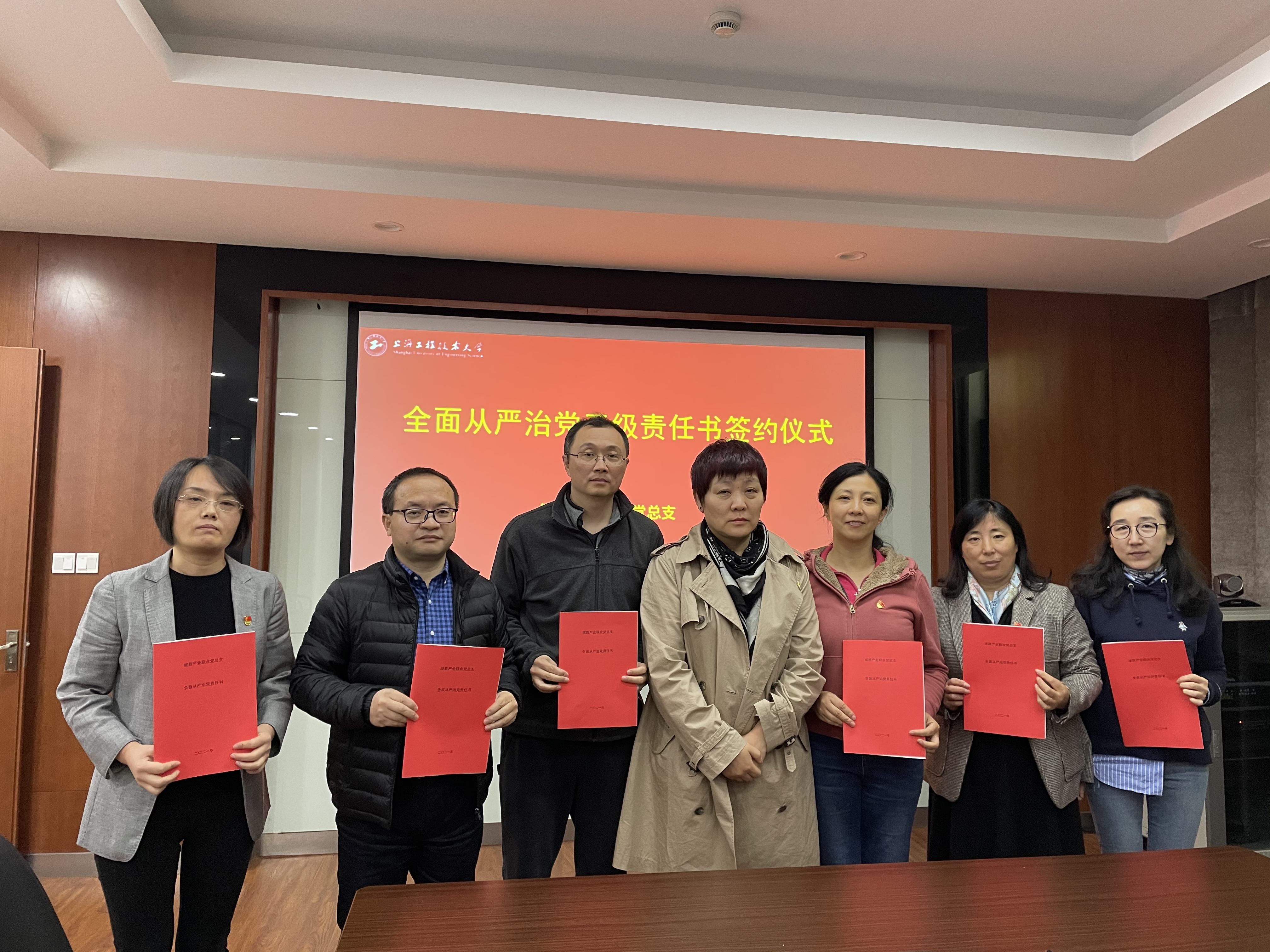 4月19日上午,继教产业联合党总支在长宁校区教学楼103会议室,召开2021年全面从严治党工作会议暨2021年全面从严治党责任书签约仪式,继教产业党政领导班子成员、总支委员、支部书记、系(室、中心)主任、工会主席参加会议。会议由总支书记叶枫主持。