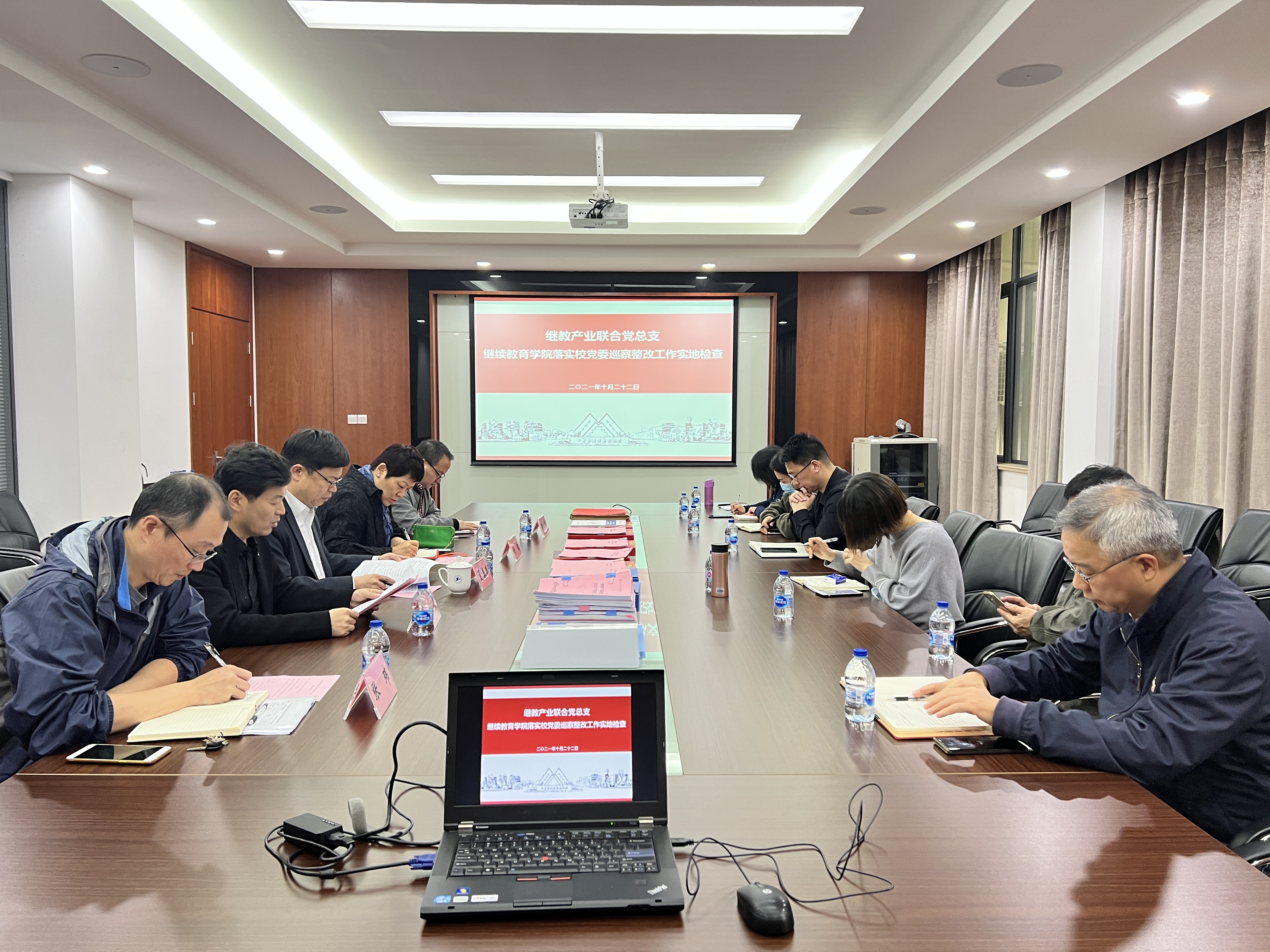 10月22日下午,夏春明副校长赴继教产业联合党总支听取巡察整改工作情况,并对sjb世俱杯中国官网入口、产业管理办公室两个部门的工作进行了实地检查。继教产业联合党总支委员,sjb世俱杯中国官网入口、产业管理办公室班子成员、党政办主任、组织员、教师代表出席会议,会议由继教产业联合党总支书记叶枫主持。