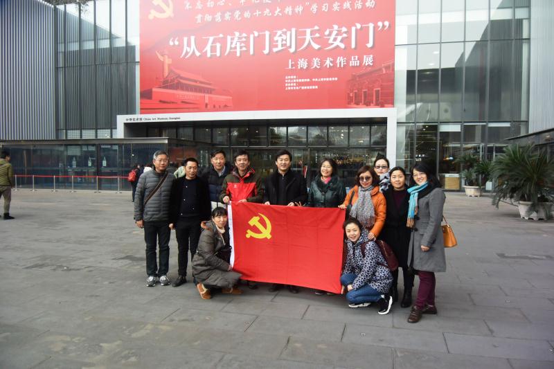 1月18日下午,在党总支书记叶枫带领下,sjb世俱杯中国官网入口党支部、公诚资产公司党支部党员前往中华艺术宫观摩“从石库门到天安门”上海美术作品展,大家带着对“如何不忘初心,牢记使命”,“如何以特殊的精神状态,学习实践习近平新时代中国特色社会主义思想”的主题思考,认真观看了每一幅作品,努力领悟每一段历史的内涵。党员们从工作岗位的不同视角去思考和讨论所感所悟,从内容到形式到手段,都是一次直抵人心的深入性学习教育,能够引导大家观初心、悟初心、净初心、践初心,启发大家坚持学思践悟、知行合一。通过参观各位党员回顾了中国共产党的发展历程,深刻体会了党在社会各方面取得的成就,大家表示,要足岗位,让习近平新时代中国特色社会主义思想入脑入心入行,用实际行动践行十九大精神。