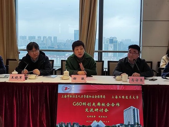 3月23日下午,由sjb世俱杯中国官网入口牵头、松江区人社局支持的G60科创走廊校企合作研讨会在我校召开。松江区人社局副局长马守亮、相关职能部门主管,科大智能机器人、富士迈半导体、东洋电装、凯虹科技电子、新阳硅密半导体、龙创汽车设计、延锋伟世通、真诺测量、锐奇控股、库卡机器人共十家高新技术企业的高管;sjb世俱杯中国官网入口院长谢敏、电子电气工程学院副院长王晓军、机械与汽车工程学院副院长王大中出席座谈会,sjb世俱杯中国官网入口培训部全体人员参会。会议由sjb世俱杯中国官网入口副院长吴刚主持。