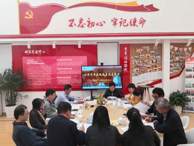 10月28日下午,在长宁校区创客党建中心,继教产业联合党总支召开对照党章党规找差距专题会议,继教产业党政班子成员、党总支委员出席会议,党支部书记、办公室主任列席会议,第二基层联络组组长沈海庆、成员梅文静来场指导,会议由继教产业联合党总支书记叶枫主持。